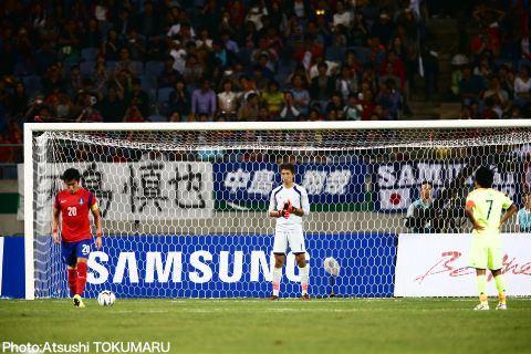 ▲韓国の主将がPKに挑む。右は日本の主将大島